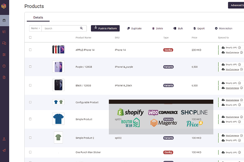 Our product information management can help you handle data on multiple platforms more efficiently, including changing prices, modifying pictures, listing or delisting goods, etc. This will greatly save your time and energy in data management, thereby freeing up more time to deal with other business issues.